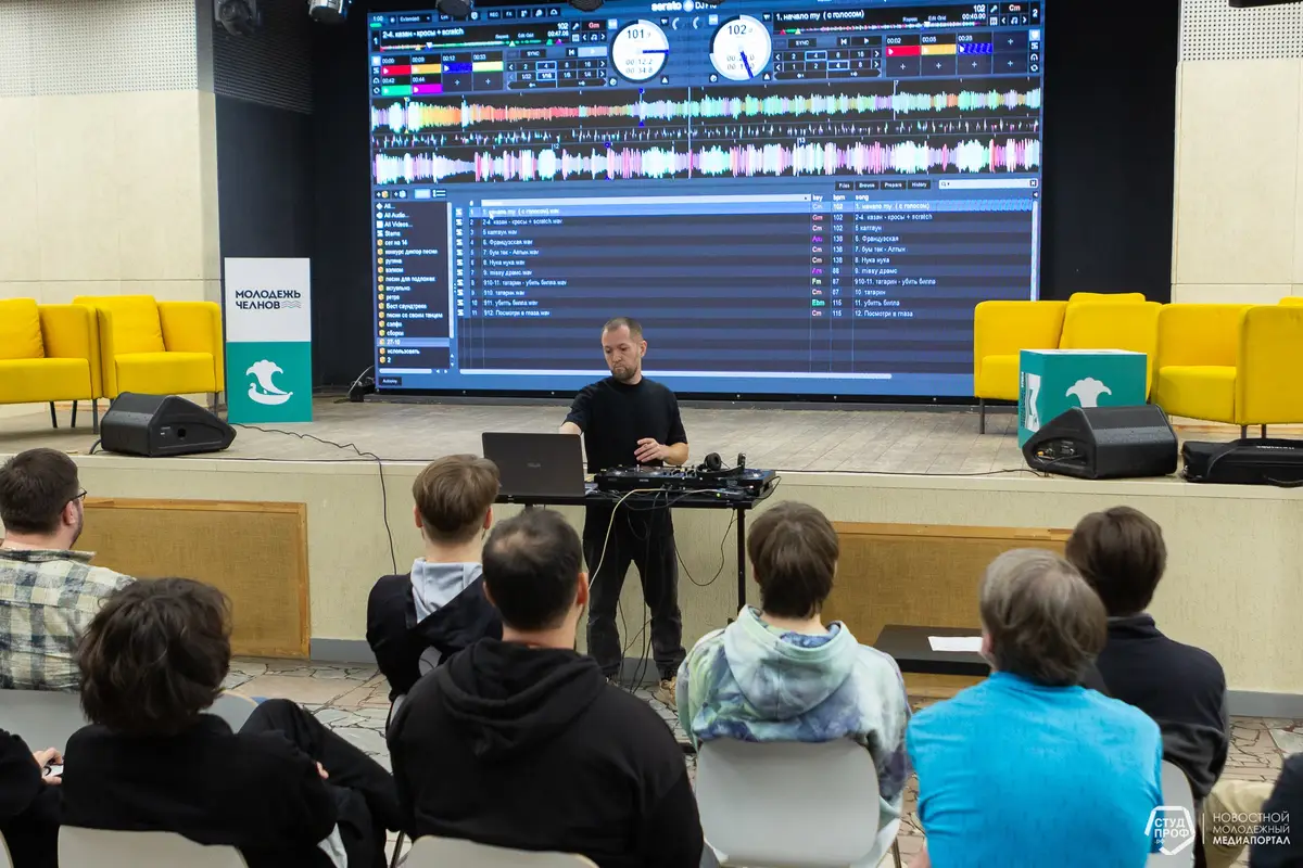 Вторым спикером стал Василий Иванов — звукорежиссёр Молодёжного центра «Нур». Он раскрыл тему навыков современного диджея: на что стоит обращать внимание в работе, как правильно взаимодействовать с ведущим мероприятия и где искать клиентов в текущих реалиях индустрии.