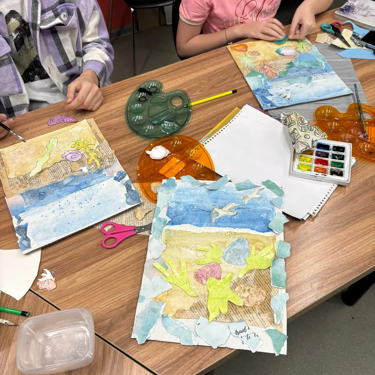 Сегодня состоялся мастер-класс «Искусство коллажа». Ребята погрузились в бескрайнюю гладь успокаивающего моря. Создали свои неповторимые работы.