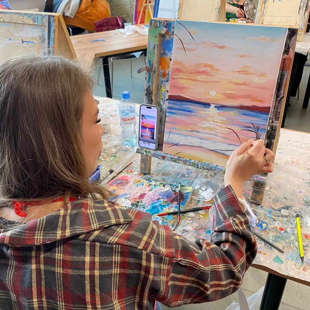 Процесс рисования акрилом для беременных стал настоящим творческим вдохновением. Сперва руководитель арт-студии рассказала участницам об основных техниках работы с акрилом, показала, как смешивать краски и достигать нужных оттенков. Затем каждая мама выбрала свои цвета и оттенки, в которых хотела изобразить выбранный сюжет.
