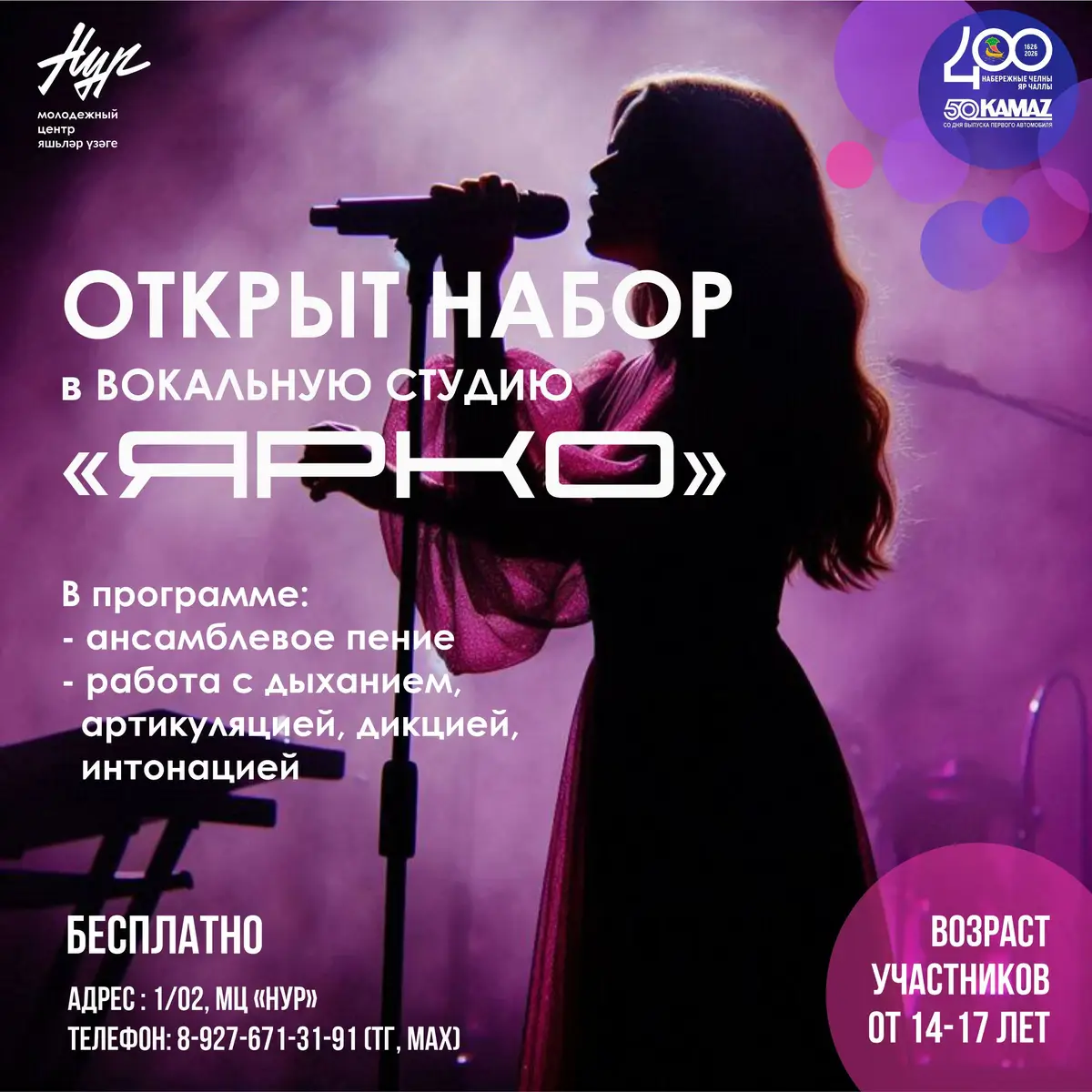 Объявляется набор участников в вокальную студию «Ярко!»