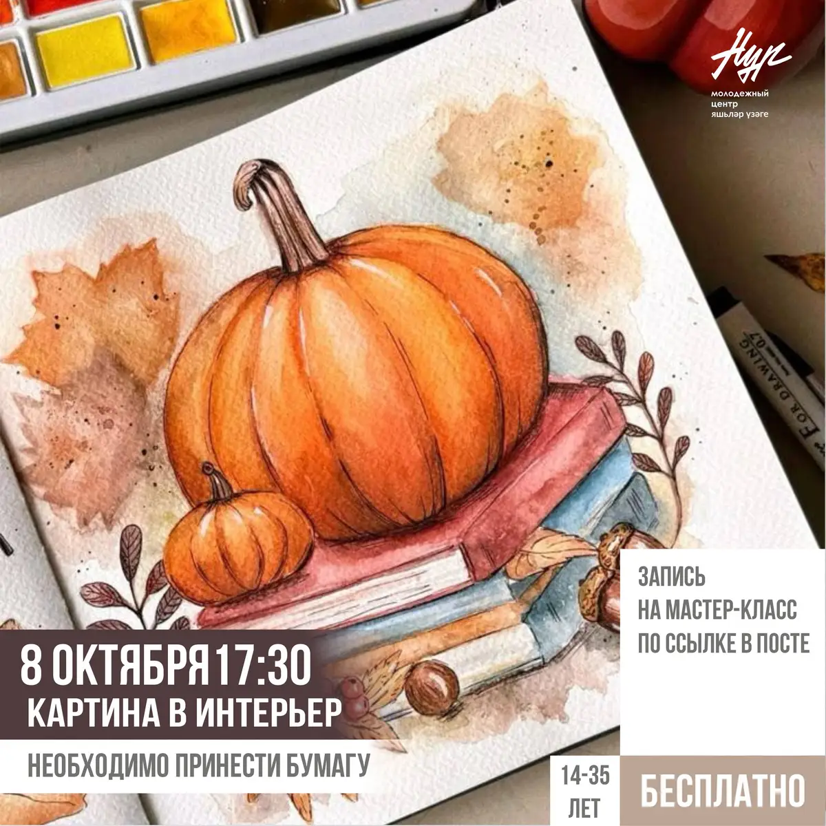 Главная » Архив материалов » Афиша » Приглашаем на акварельный мастер-класс, где мы нарисуем милую осеннюю иллюстрацию!