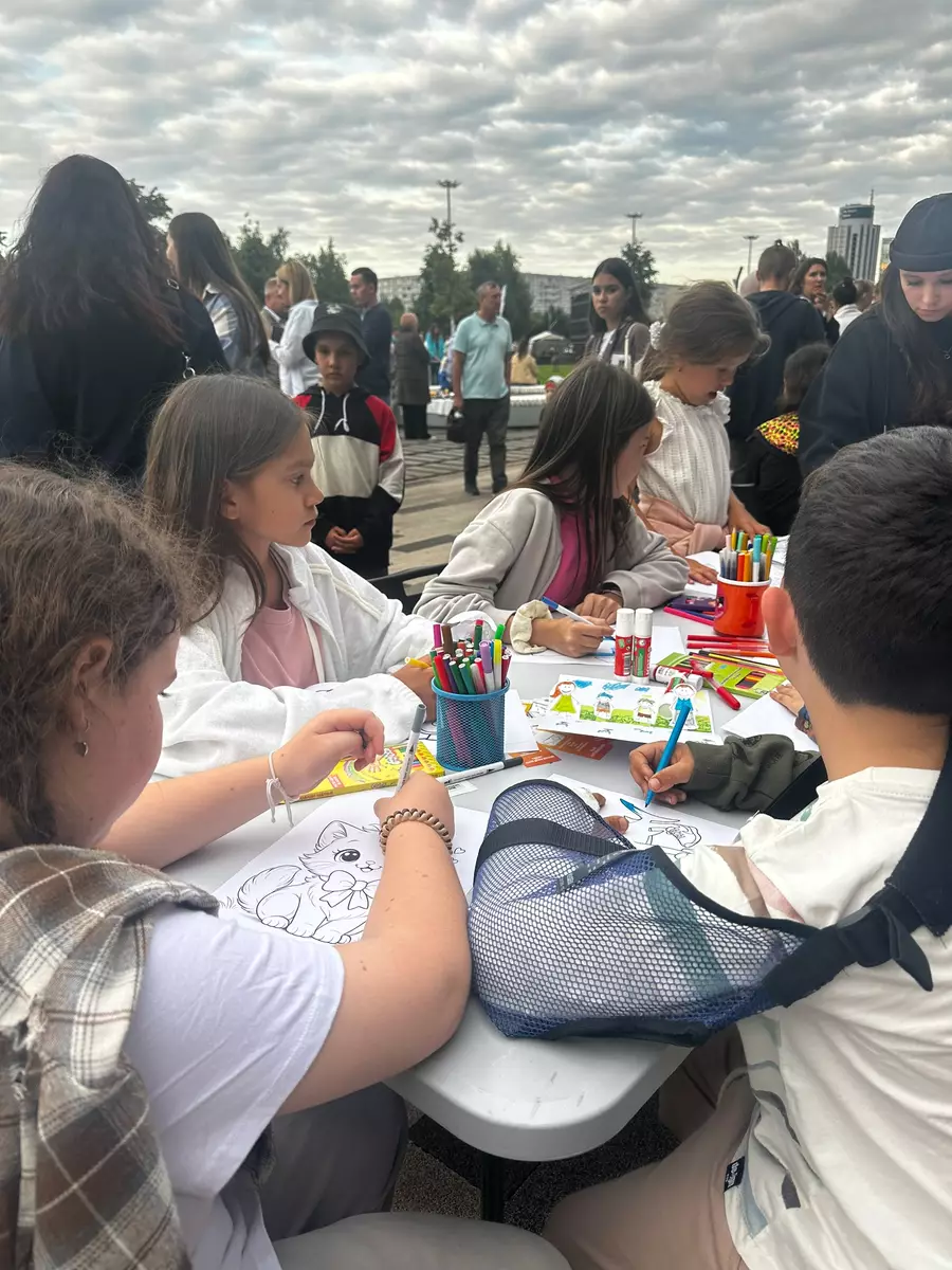 Ребята разного возраста с родителями с увлечением разукрашивали раскраски — от простых картинок для самых маленьких до более сложных иллюстраций для тех, кто постарше.