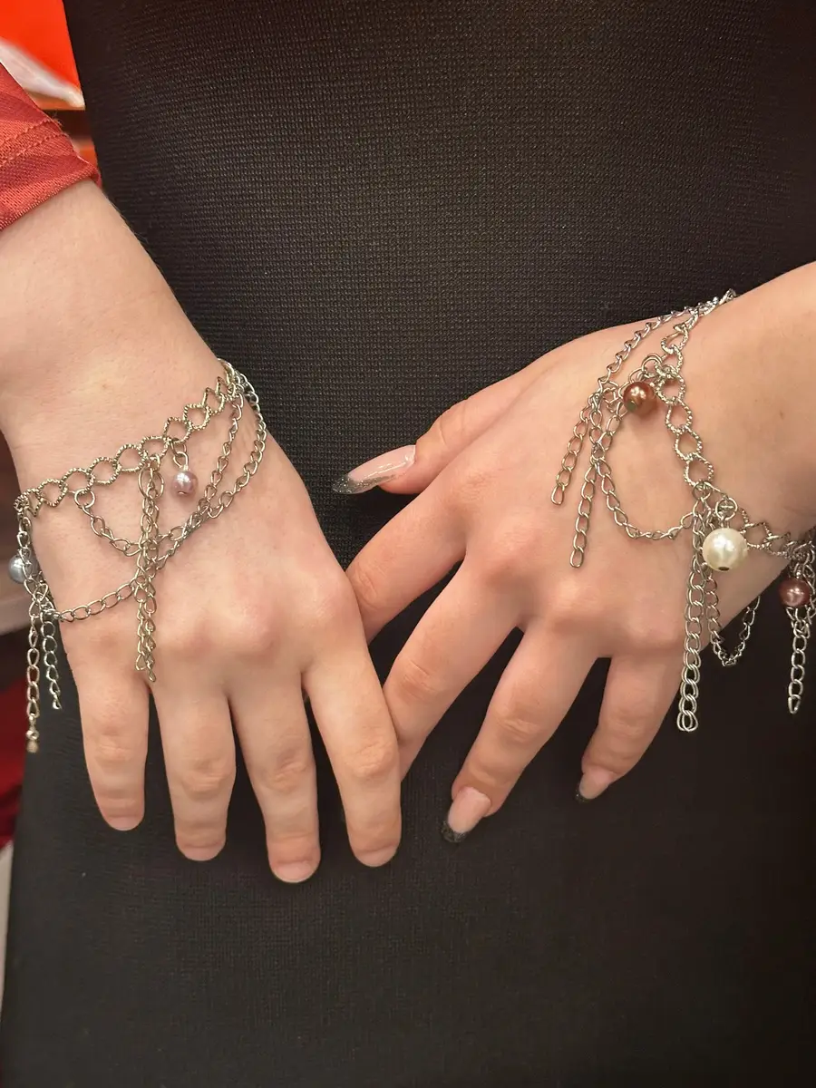 Участницы мастер-класса собрали в одной связке разные фактуры, длину цепочек и игру света.
