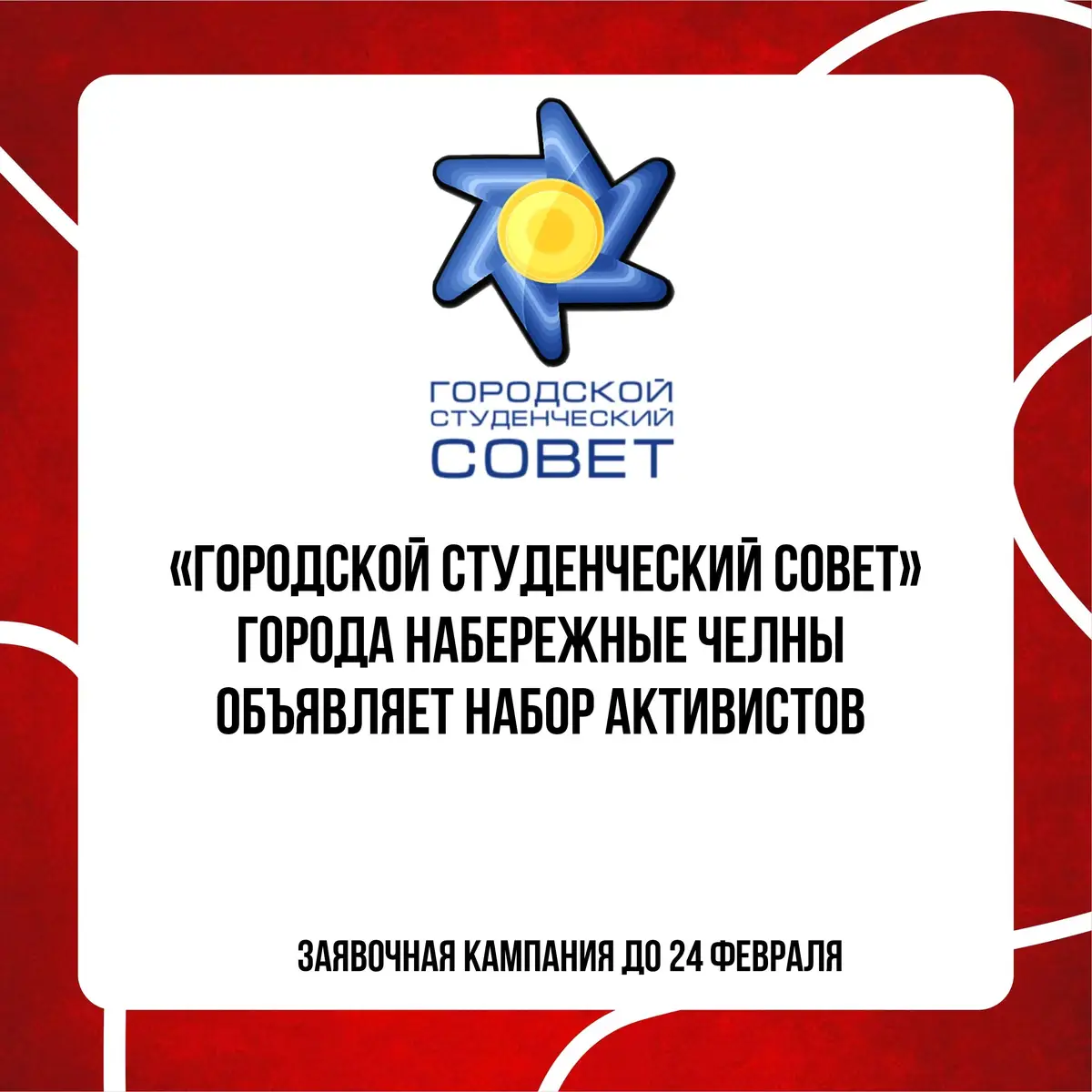 Хочешь не просто учиться, а создавать историю своего города? ММОО «Городской студенческий совет» Набережных Челнов объявляет масштабный набор активистов!