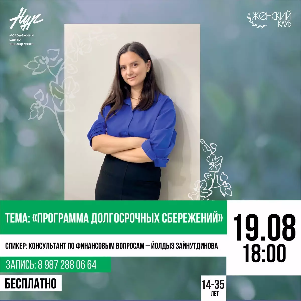 Запись по ватсап: +7 987 288-06-64 – руководитель проекта «Женский клуб» Айгуль Варина