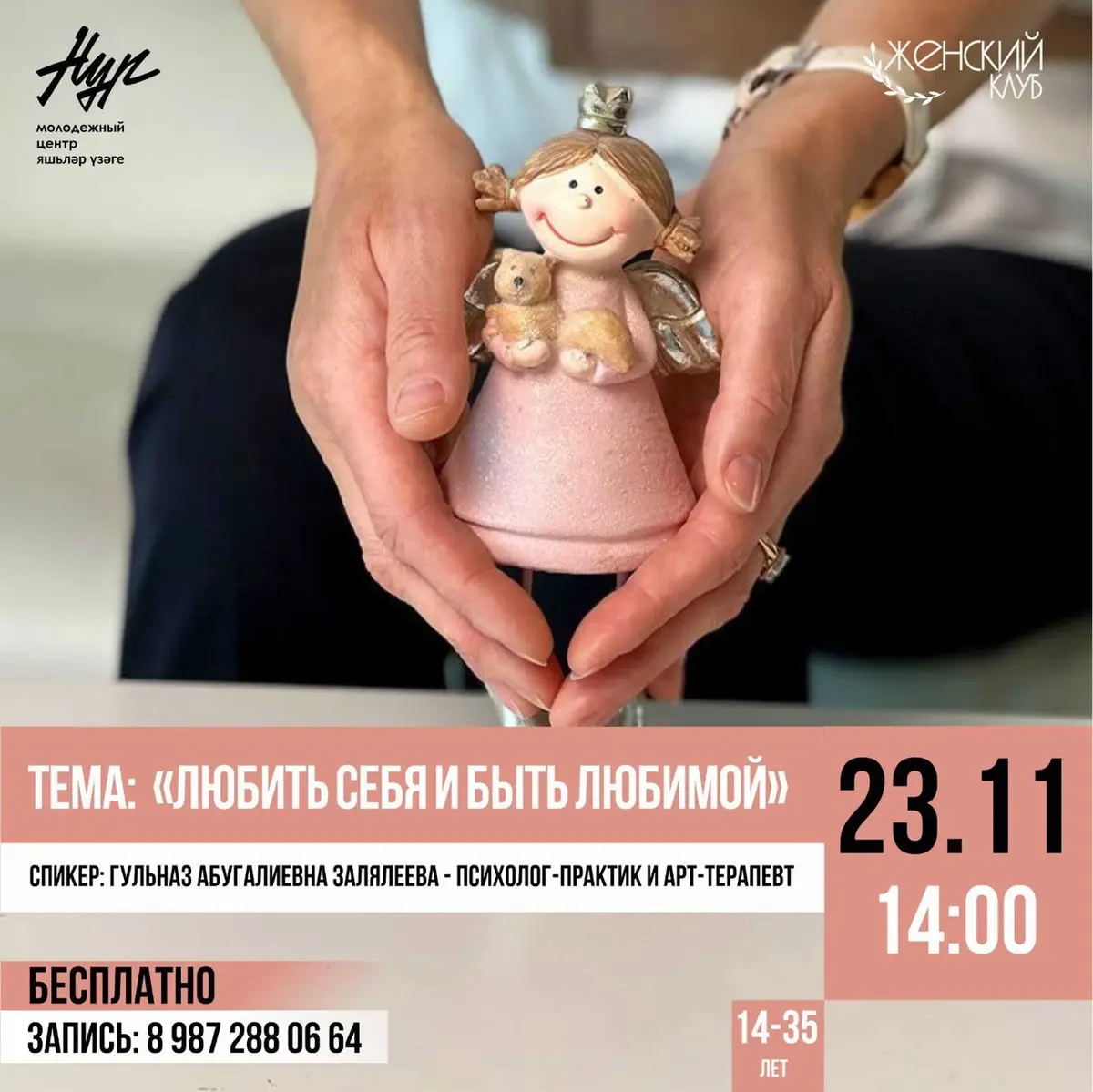 На встрече поговорим как быть собой и позволять себе быть любимой.
